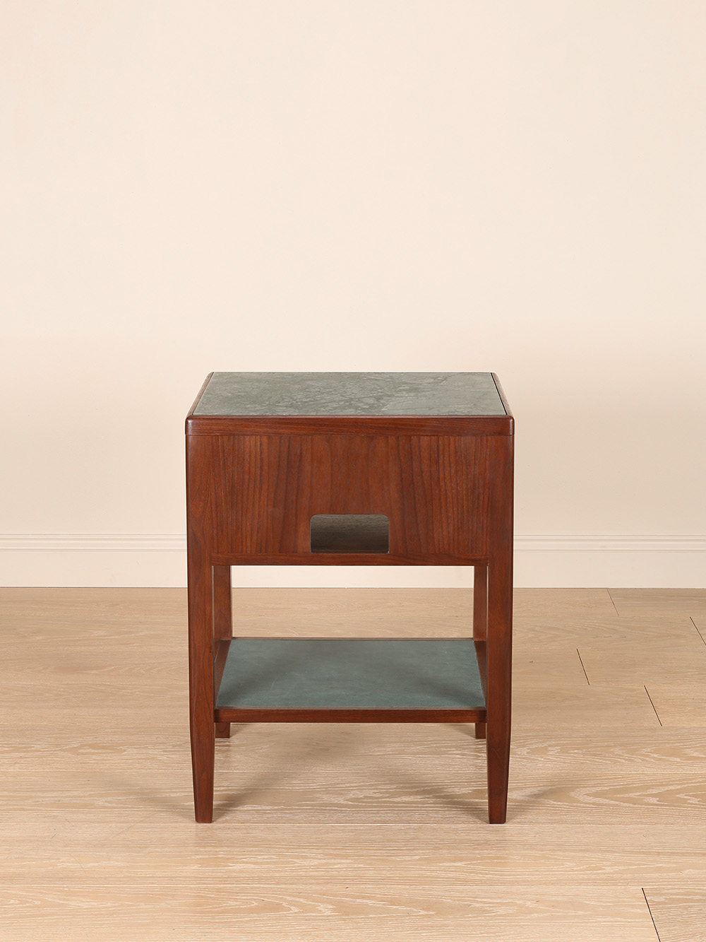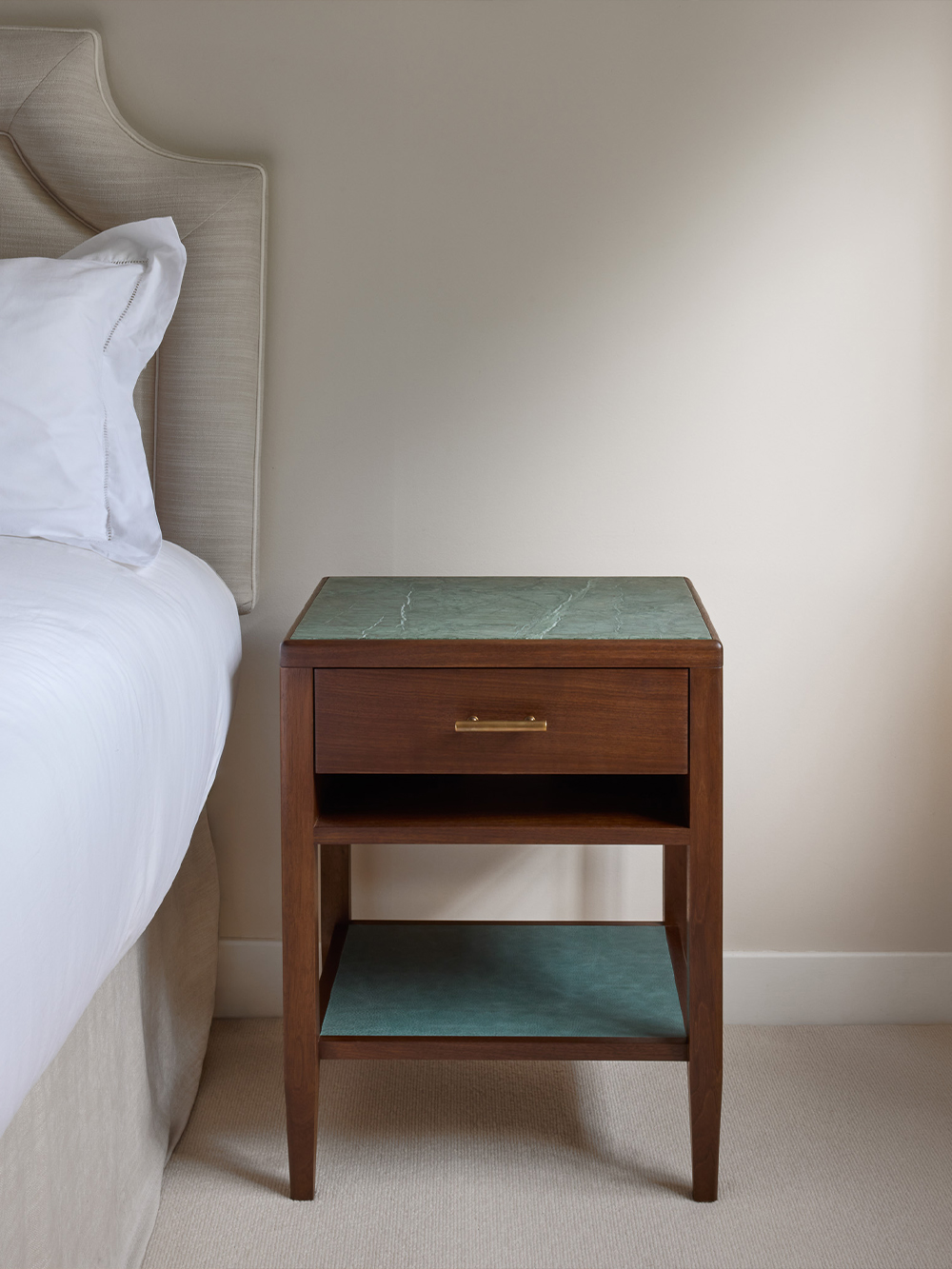 A bedside table that understands the practicalities of modern life and merges refined materiality with practical elegance.